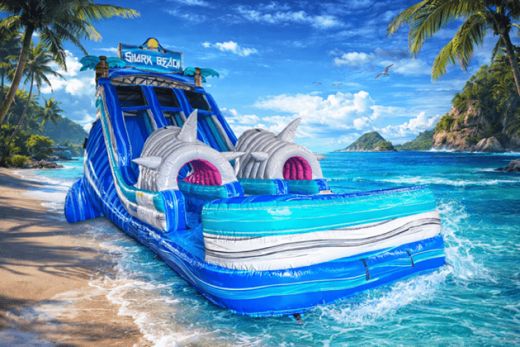 Reserve your Shark Waterslide rental today with Bouncy B Rental — the best place for inflatable fun in your service area!